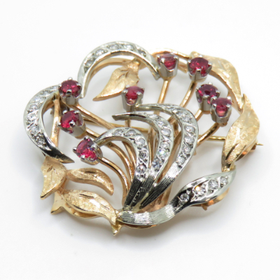 18k White Yellow Diamond Ruby