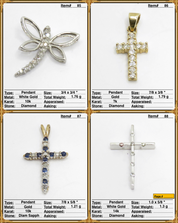 to the Collector your Question with Item Name, Number Example: "Pendant 32"