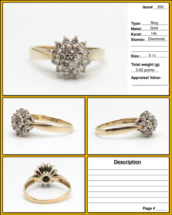 14k Gold Diamond Cluster